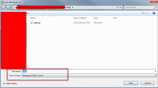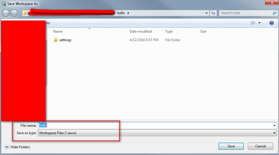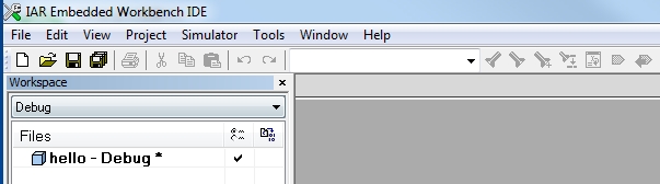 5)保存创建的Workspace,IAR->File->Save Workspace。保存Project到拷贝过来的hello文件夹,并且工程名为hello,后缀是eww格式。