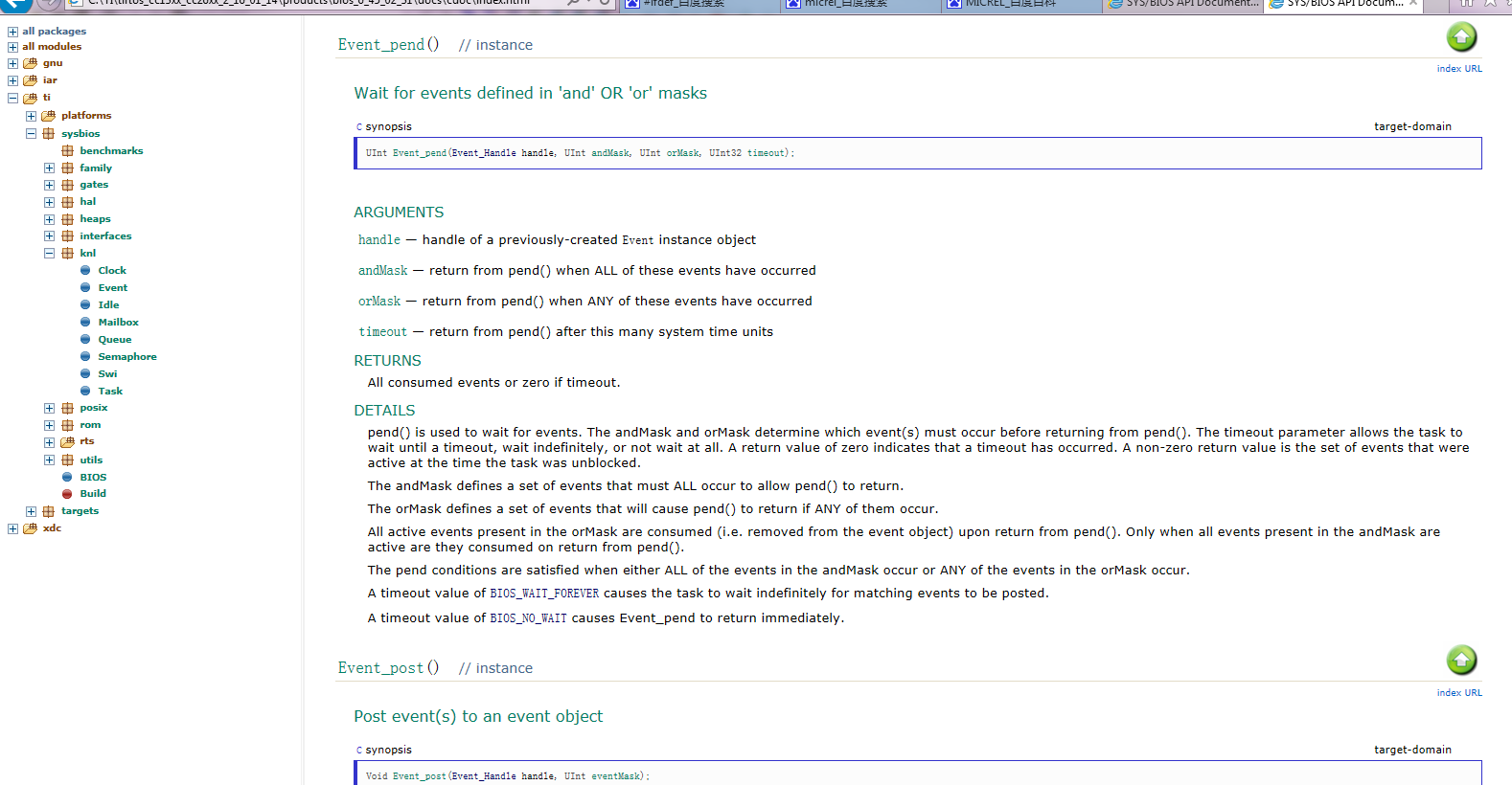 (3)ti_sysbios_knl_Event_pend__E 本函数用户不可见,有没有关于本函数或类似函数的使用或介绍的详细文档或资料,谢谢!