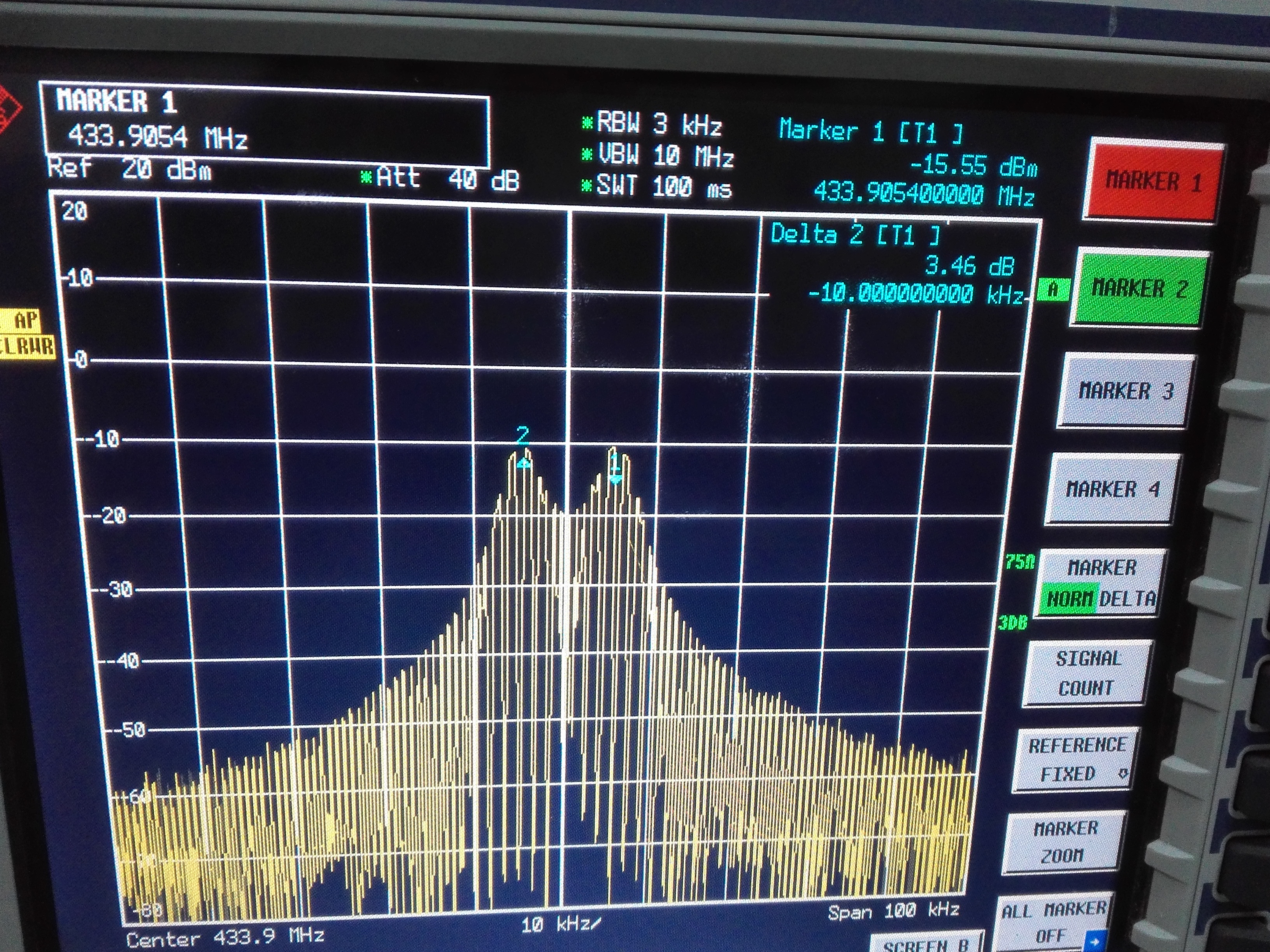 这个看上去是一个正常的FSK的频谱。