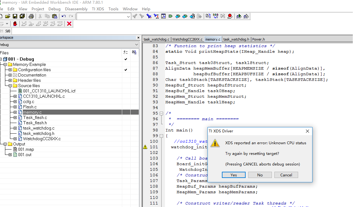 我对TI 的RTOS不是很懂。接触cc1310不久,之前都是做裸机开发。我重新找了个看门狗程序。