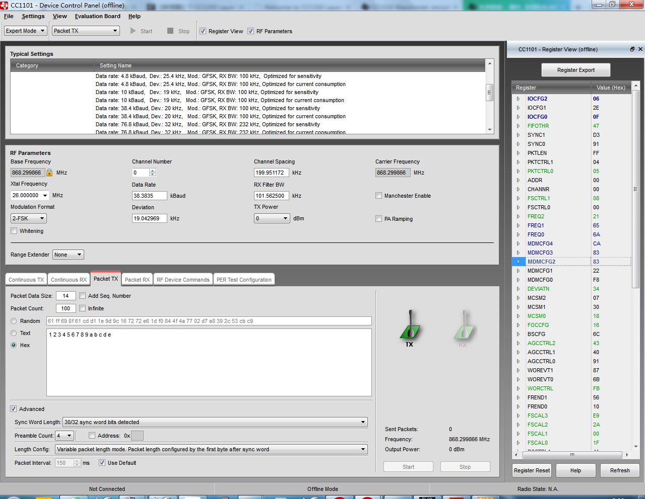 下图是根据上面数据配置的CC1101的参数