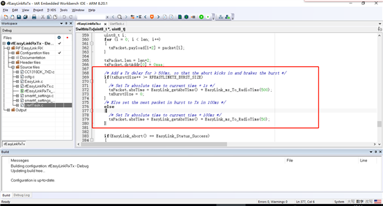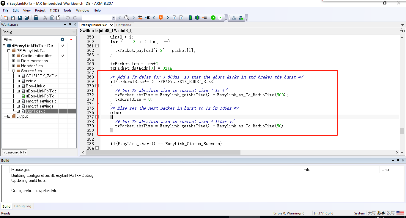 我实在smartRF06上面调试的,实现功能:串口接收到数据通过无线发送出去,无线接收到数据再通过串口发送出去