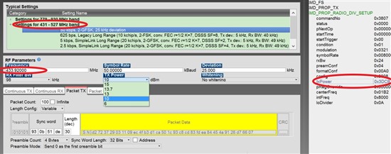 我现在通过两个开发板基于433MHz建立无线通信,通过smartRF studio7对发射功率进行设置,