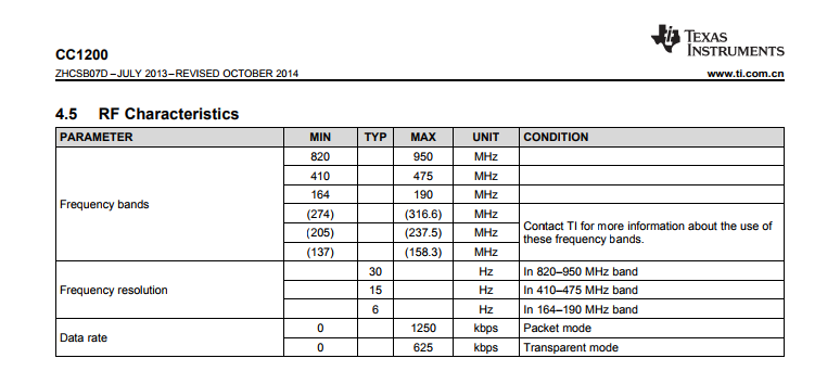 CC1200资料显示可以用在137~158.3MHz频段,但官网没找到用在此频段的资料。
