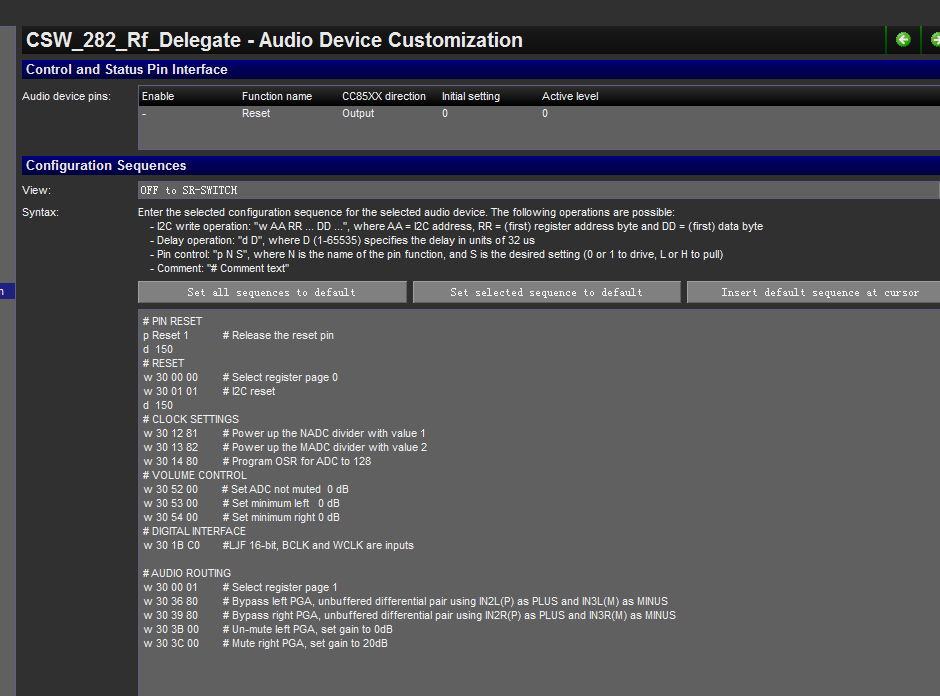 我现在使用PurePath Wireless Configurator 芯片使用CC8530 ,现在使用C8530自带的IIC设置TLV320ADC3101,但设置后TLV320ADC3101没有数据输出