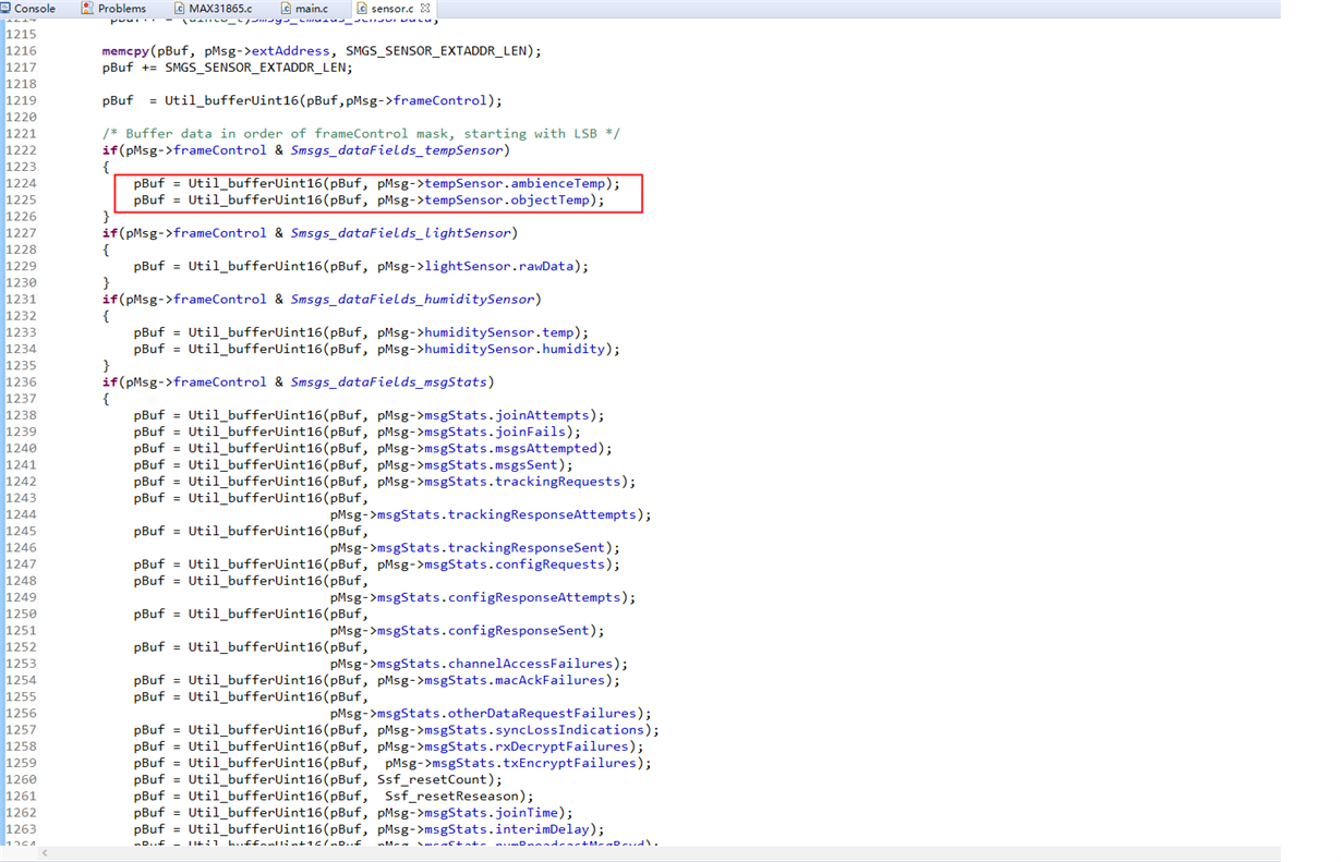 我在使用CC1310基于TI 15.4-stack协议进行通信,使用CCS导入了collector和Sensor的例程,在sensor端加入了读取外部温度数据的功能。
