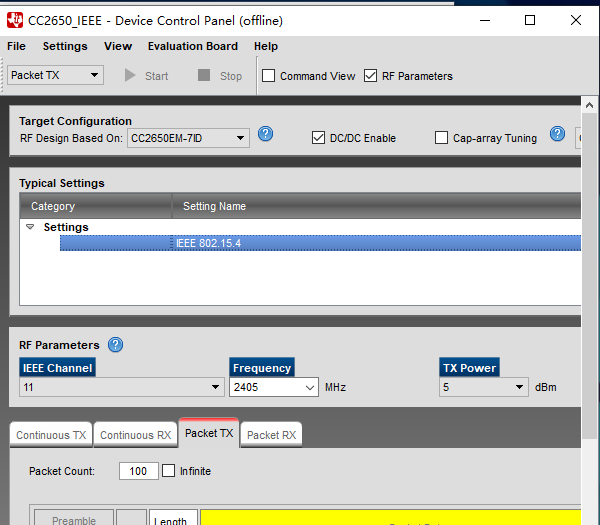 SmartRF Studio 7只会提供实验室验证过的设置,C1350的2.4G私有协议没有进行相关验证【因此也没有例程提供】,所以软件中没有配置。但是CC2650是有的,见下图。
