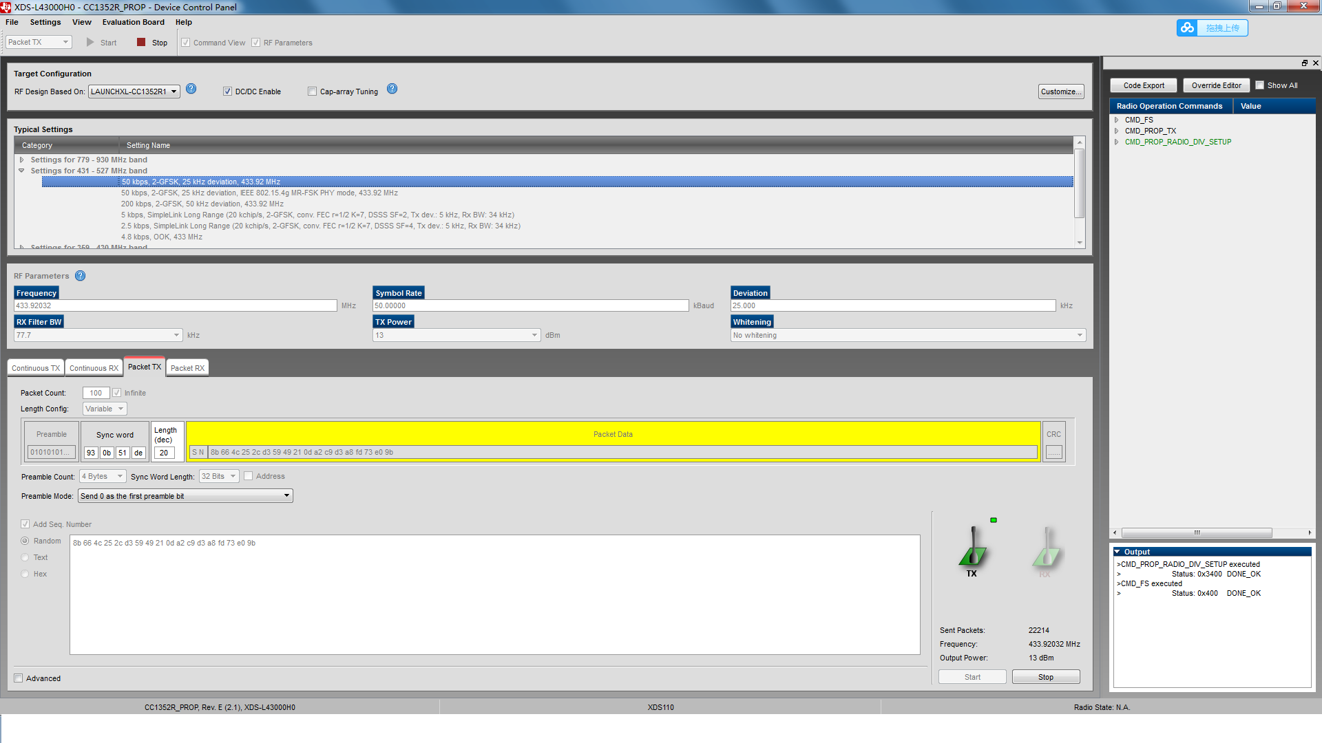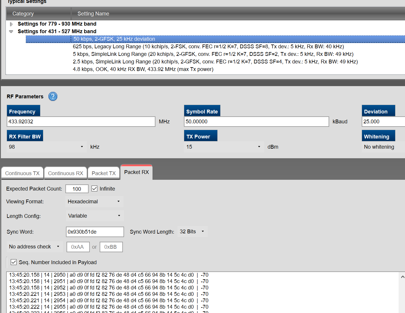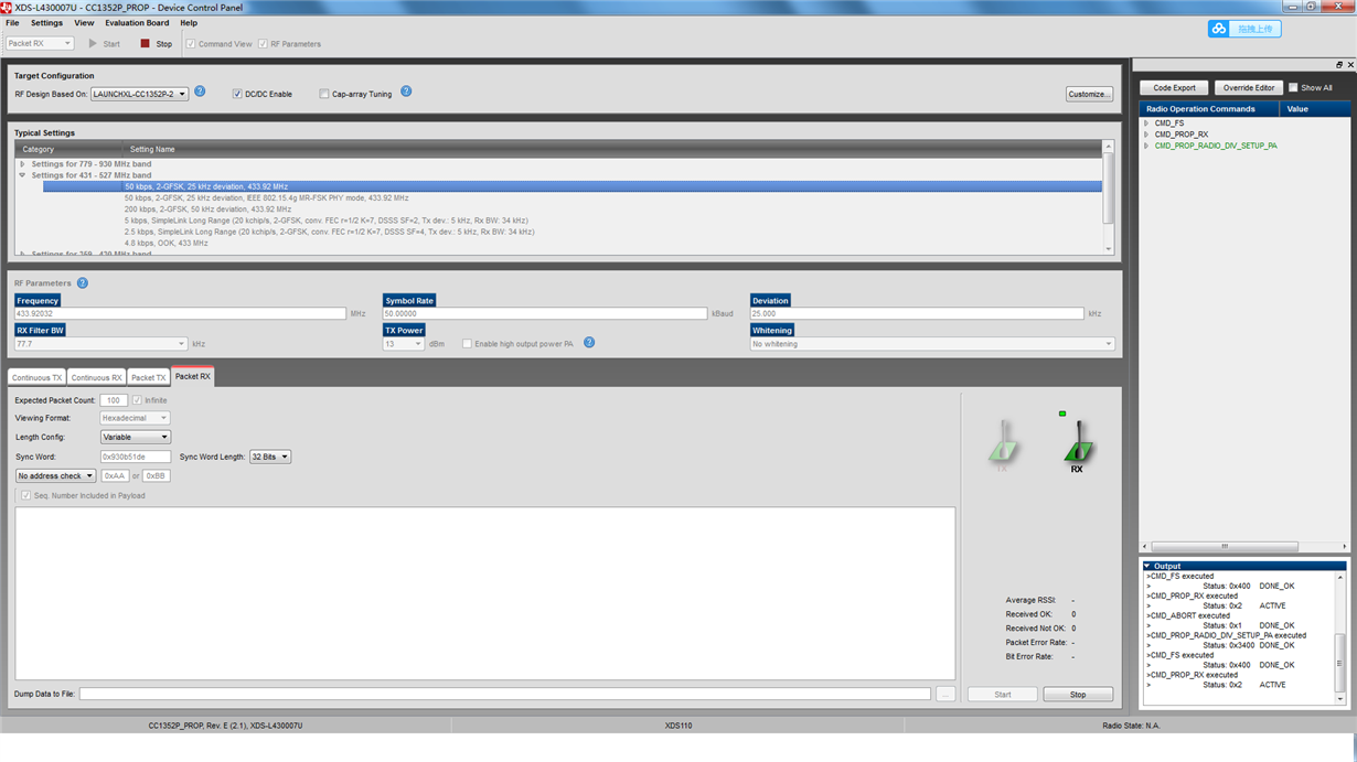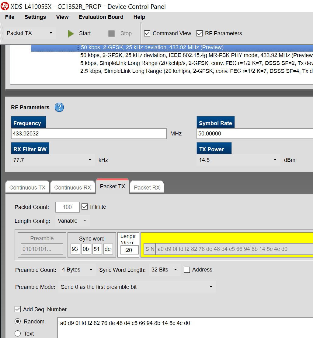如何实现CC1310 CC1352R CC1352P在433MHz频段连接呢?我在SmartRF Studio 7测试packet 发送和接收,只能是同型号的正常通讯,一旦芯片型号不一样,就接收不到数据!看配置都是一样的,我该看那些资料,或者修改那些配置?
