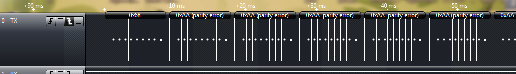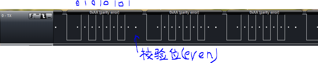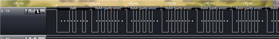 问题来了:在我实际UART通信时,偶校验位经常会出现错误,使用逻辑分析仪截图如下:(我也用示波器看过,排除逻辑分析仪出错的可能)