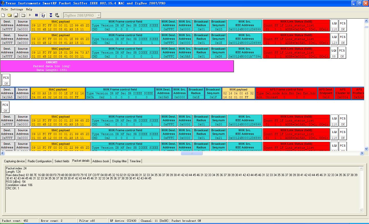 AF_DataRequest发送后,在协议分析仪上看到发送出去的数据了,但是无论发送时transI是多少DAF_DATA_CONFIRM_CMD中的transID一直都是0xA0,而且接收到的数据长度居然是0