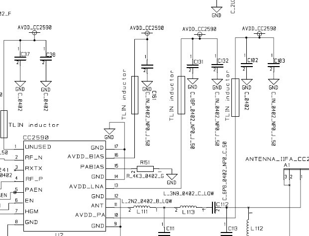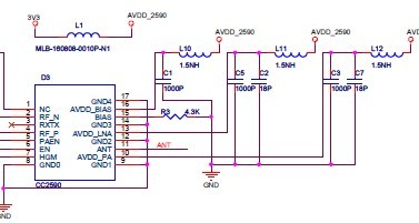 不知我们这样的滤波是否可以?TI参考设计中的CC2590 Pin10/13电源滤波是低通滤波吧。大致的截至频率是多少?