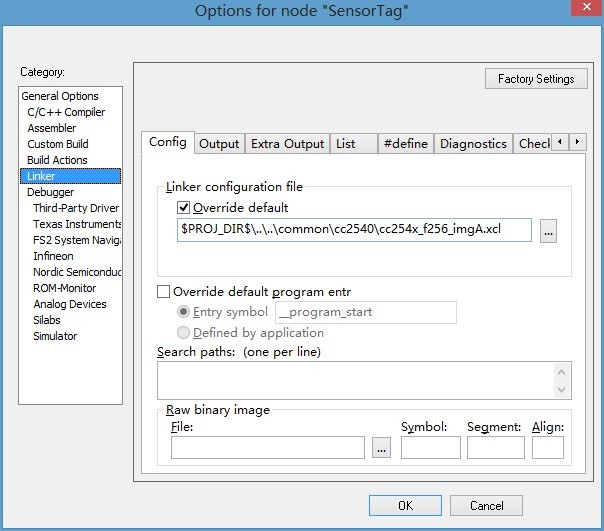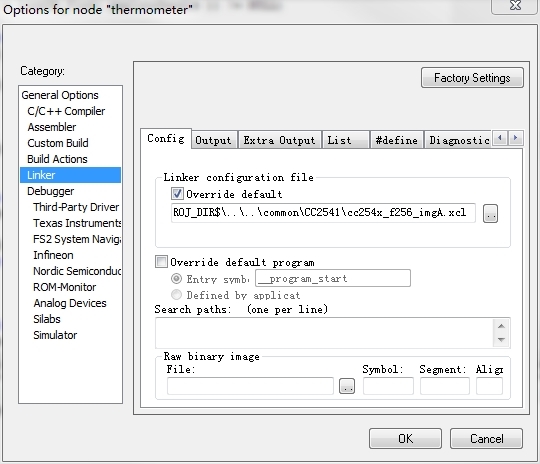 Unable to open file 'C:Texas Instruments\BLE-CC254x-1.3.1\Projects\ble\THermometer\CC2541DB\..\..\common\CC2541\cc254x_f256_imgA.xcl.
