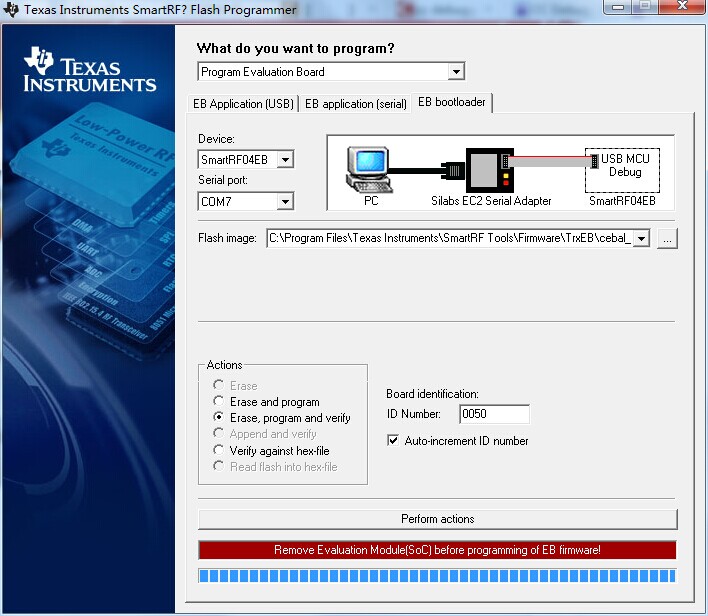 最近在调试程序的时候,CC debugger没反应了,加电以后灯也不亮,看资料上有两种方式烧写bootloader,用另外一个cc debugger或者SmartRF05EB,但是我手上只有一个SmartRF04EB,不知道能对CC debugger进行烧写bootloader嘛?谢谢!