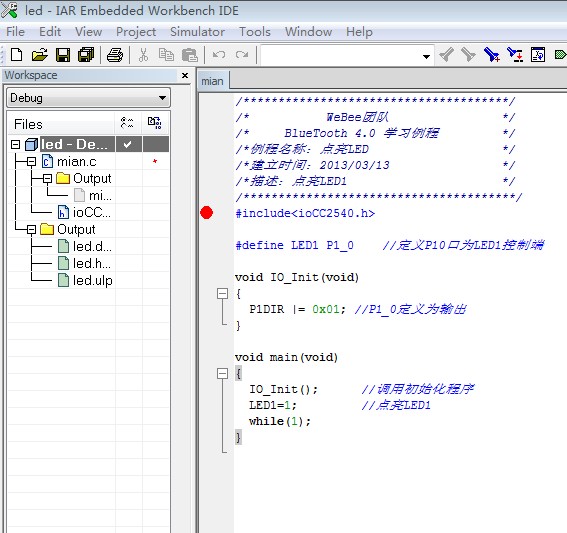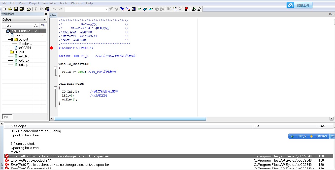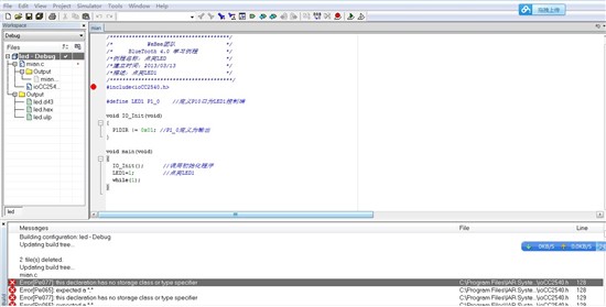 我也下了第一个程序,点亮第一个LED灯的代码,勉强能看懂,想进行烧录,