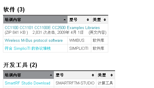 在TI官网输入CC1101,进入芯片产品页面,下拉到“软件”栏,即可找到相应代码,其他芯片亦是如此。CCC1101的参考代码链接:http://www.ti.com/cn/lit/zip/swrc021