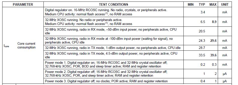 CC2530可以通过时钟管理寄存器设置降频,我想问的是,手册上仅给出了主时钟为32M外置晶振时的核心工作功耗以及使用内置16MRC时的核心工作功耗,而没有给出设为更低频率时的核心工作功耗,譬如,我想知道设为1M或者2M时的核心功耗究竟是多少?