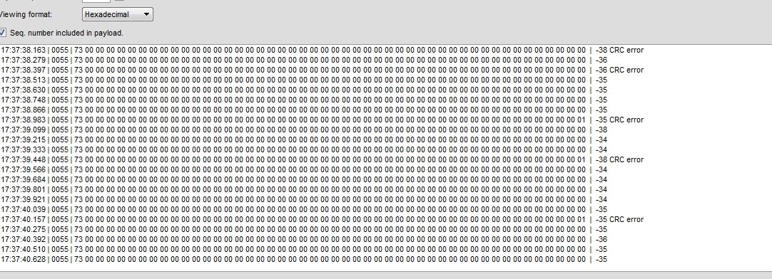 一个CC2510用SMARTRF打开做接收,另外一个写了循环发射程序,发现SMARTRF接收CRC错误很多,不知道为什么。核对了IAR里面的RADIO reg跟SMARTRF是一样的。