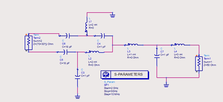 这个怎么仿真呢?请教一下射频电路的仿真问题?因为这个后面接的是50欧姆的天线,T匹配是是匹配到50欧姆的。。