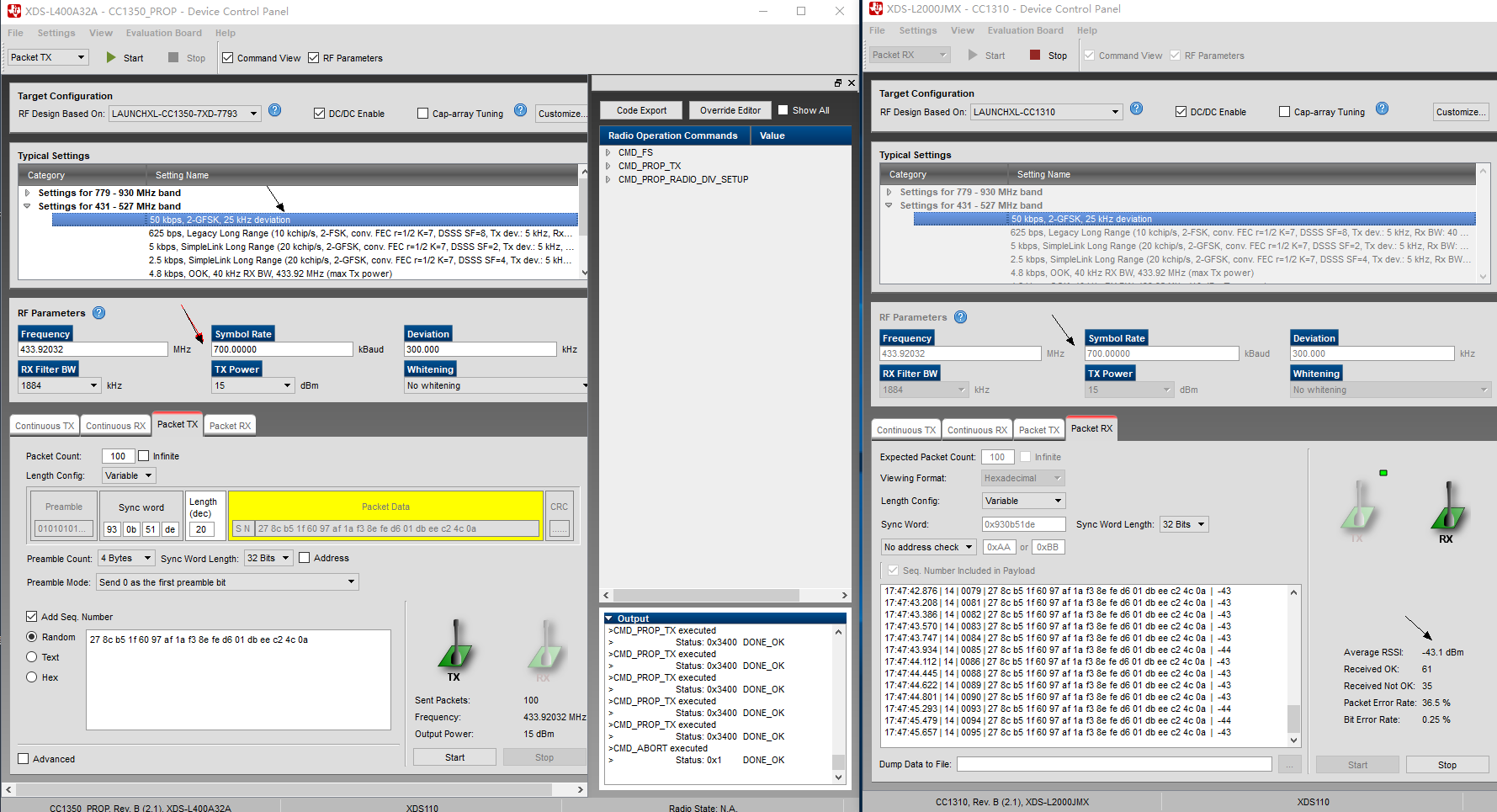 ( +) CC1310:通过 RF_cmdPropTxAdv 和 RF_cmdPropRxAdv 使用 433M@1Mbps 接收不到任何信息 - Sub-1 GHz 论坛 - Sub-1 GHz - TI E2E 支持论坛