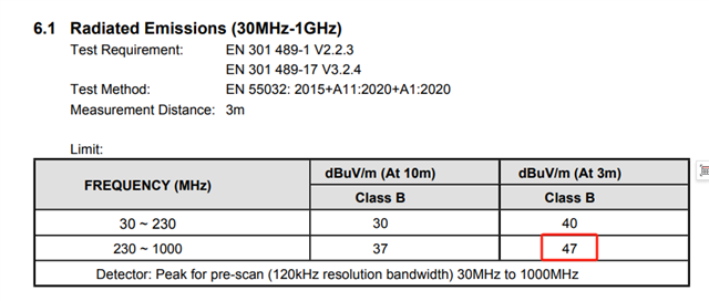 这个认证要求(CE 300328 )的输出功率范围是 在30M-1G频段范围内的杂波不能超过-36dBm吗?您做的是这个认证吗