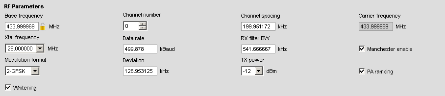 3.CC430 RF使用500kbps速度有没有什么设置要求?按照SmartRF Studio设置的不能接收数据,RF寄存器显示操作数错误,设置如下图,请问有什么问题?