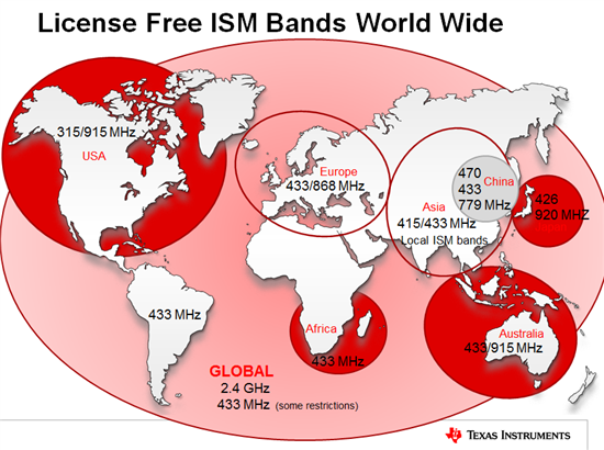 请教一下,国外免费的射频频段有哪些?除了2.4G。有相关的法律法规吗?