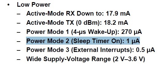 感谢您的回答,是这样,我听说只要有osal定时器在跑就就只能进入到PM2模式,那时的电流有300uA,这样看来真算不上低功耗,一个纽扣电池供电的蓝牙基站,用不了 多久吧,囧。