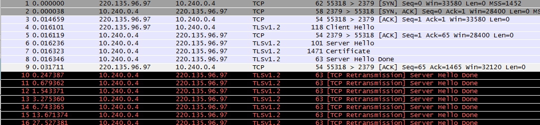 看起來是CC3200 沒收到Server Hello Done,因此3200沒發client key exchange Message。