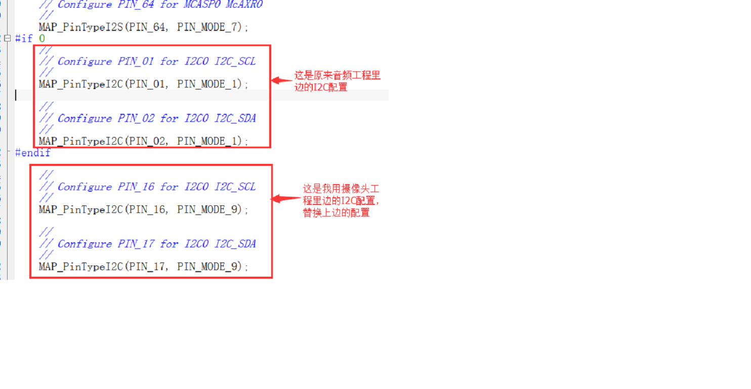 音频模块I2C的IO口改为摄像头工程中的I2C对应的IO,是不是只改I2C对应的IO口就行了?就是这里: