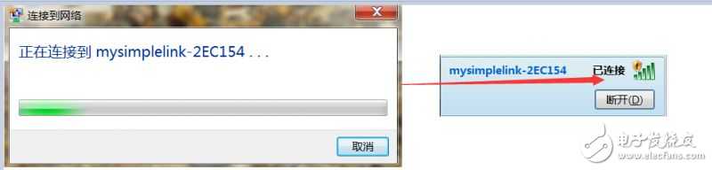 电脑需要能够访问无线连接的功能,打开电脑的无线连接,查找类似“mysimplelink-xxxxxx”名称的无线接入点,并接入该无线设备。如下图20所示。