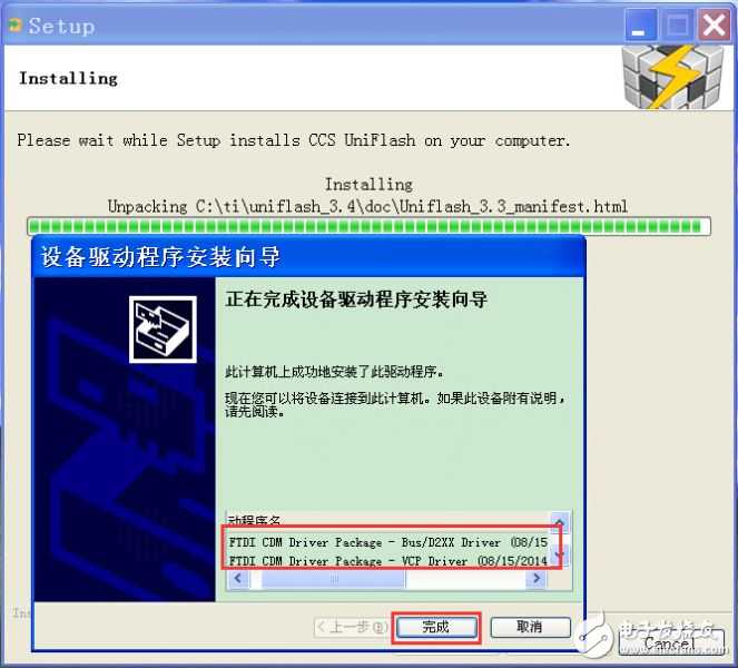 设备驱动完成安装后,提示FTDI相关的驱动包已经正确安装。如下图12所示。