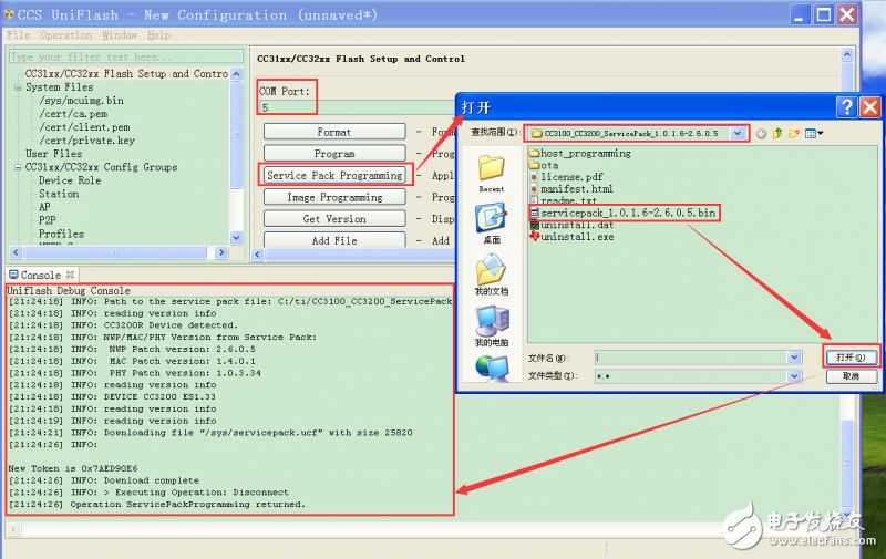UniFlash比较复杂,不过我们现在先使用UniFlash升级CC3200SDK对应的ServicePack和固件程序。