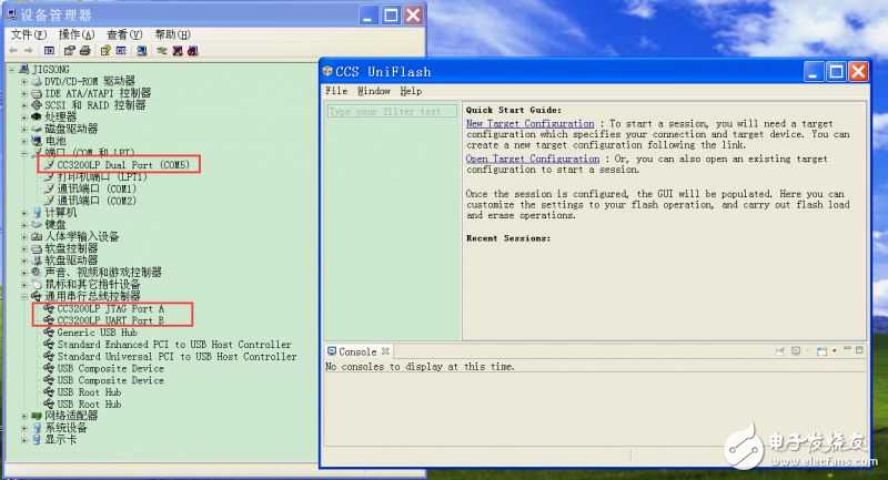 完成J15的跳线后,把开发板接入电脑,需要打开设备管理器并找到CC3200开发板在电脑中的串口号。然后打开CCS UniFlash程序。如下图15所示。