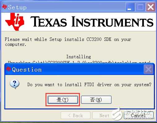 安装SDK过程中,会提示是否安装FTDI驱动,点击“是”来安装FTDI驱动。FTDI驱动可以给CC3200LaunchPad分配资源和串口号。如下图9所示。