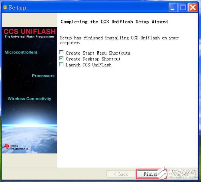 最后点击“Finish”完成UniFlash的安装,如下图13所示。