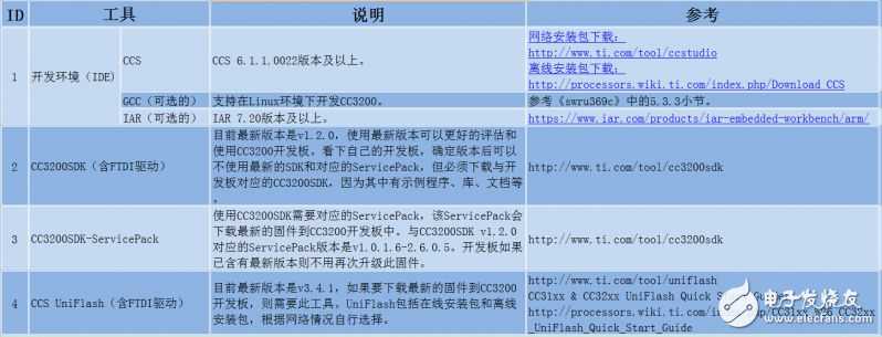 为了确保使用最新的库和程序示例,建议安装最新的CC3200SDK和对应的ServicePack。注意,这里的SDK一定要使用相对应的ServicePack。SDK是桌面环境中使用的库、资料、示例程序等,ServicePack是需要烧写到CC3200 LaunchPad上面的flash中的,SDK和ServicePack需要对应使用。