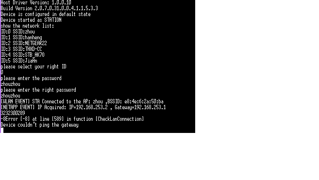 在修改调试SCAN例程时,CC3200端能够连接到无线接入点,但ping不同网关,但在PC端能够ping通CC3200,这是什么原因呢?ping函数如下: