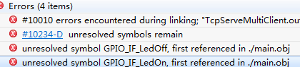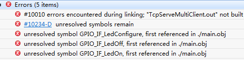 我想在通过接收数据的时候使CC3200 Lanuchpad上的3颗led灯闪烁,已经添加了头文件和修改了pinmuxconfig,但是一旦使用LED的相关API(我添加了GPIO_IF_LedConfigure(),GPIO_IF_LedOn(),GPIO_IF_LedOff()),就会出现图中的报错,
