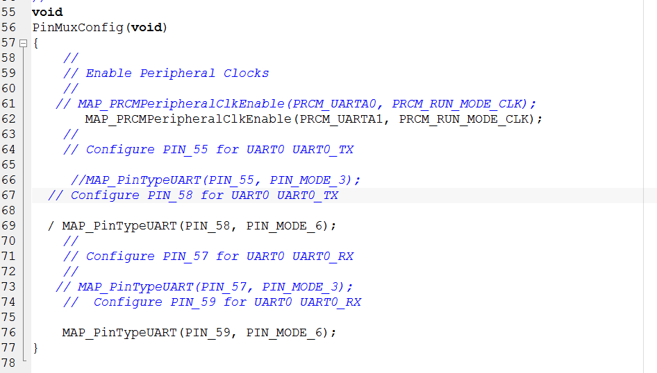 第一个:在使用CC3200串口时,我想使用UART1,根据数据手册,我使用了GPIO03和GPIO04引脚的模式6,然后在板子上将J6,J7连接到58,59脚。程序也做了相应更改,但是编译调试的时候,串口上并没有任何显示,请问是为什么?CC3200默认下载程序口就是GPIO01和GPIO02吗?