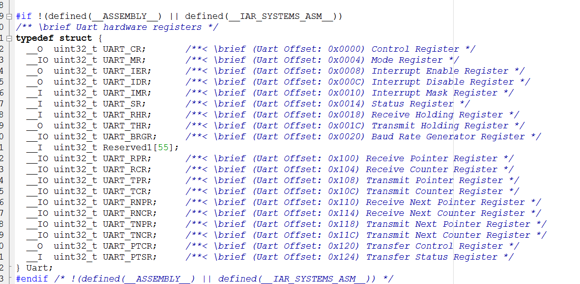 第二个:UART.h里的寄存器和数据手册里面的寄存器的偏移地址怎么不一样呢?