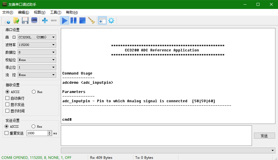 验证公板没有问题,我又烧录了烧录adc.bin,按下reset后有打印信息