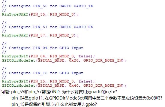 问题: pin_55和pin_57都是GND, 为什么能复用为uart0的rx/tx?