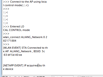 CC3200 SDK的 例子serial_wifi 必须要用两个launchPad模块 才能 实现 通信吗? 我手头现在只有 一个 模块 调试serial_wifi 这个 例程 ,另外一头 那个 模块 用网络 调试 助手 充当 接收 没有反应 . 模块 已经连接上路由器了.如下图所示 . 但是 我 输入 send 命令没有 数据 . (send命令 第一个字段只是IP地址?,不用端口号?)