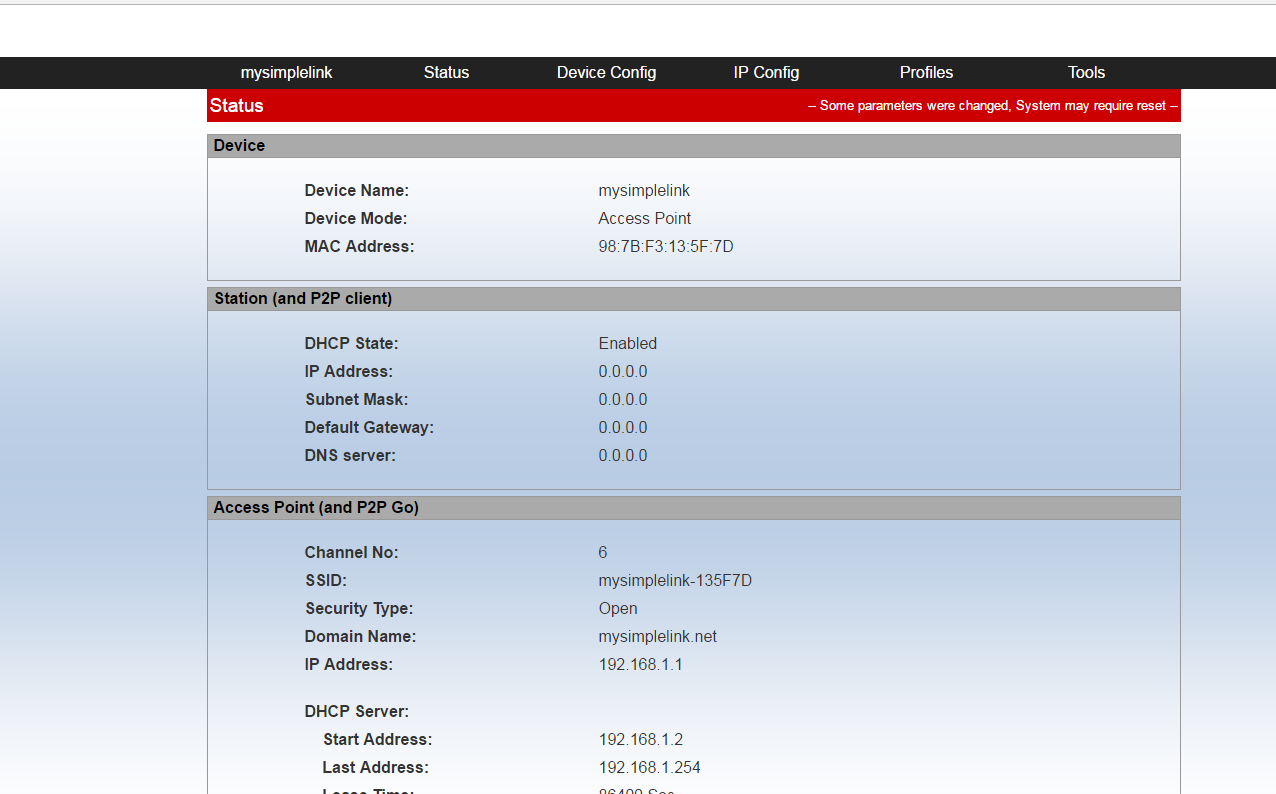 • Connect to CC3200 device as mentioned in Quick Start Guide, You will see below main page on your browser