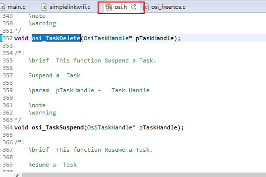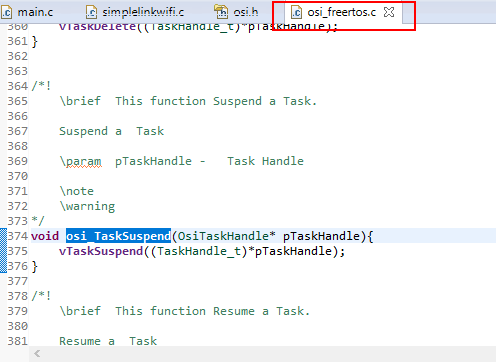 代码中想用到osi_TaskSuspend挂起函数,但是没有定义,只有一个vTaskSuspend()函数,直接引用会出现很多错误,所以就按照osi_freertos.c中的函数定义