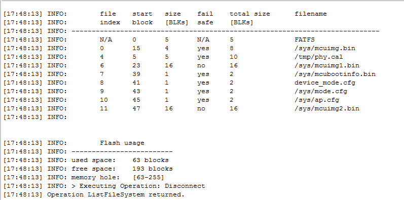 这个函数后,系统无法重启,从串口看log,卡住了(没有重新从main启动)。我烧录的application_bootloader是从SDK中编译出来的,没有改动,升级后用Uniflash 查看的文件列表 见附件。而且发现升级后读取/sys/mcubootinfo.bin 明明是把img状态写进去了,而且也把文件正常关闭了,但是当我软件重启失败后,用硬件reset,后再次打印文件内容,发现读取的还是默认的数值, 所以我有点怀疑,软件reset 可能是卡在了读取/sys/mcubootinfo.bin 整个文件的操作上,这只是猜测。
