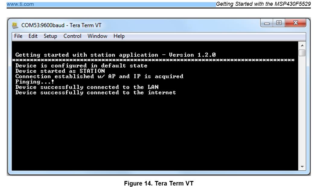 之前有试过直接将CC3100与单片机连接运行wlan-station的例程,Tera Term的结果: