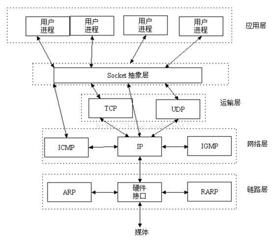 将两幅图对比一下就可以发现socket在整个网络架构中的位置了,到这里基本就可以理解其实socket就是应用层与TCP/IP协议族通信的中间软件抽象层。到这里对socket的基本介绍就算结束了,如果还想了解更多,可以自己问问度年哈。了解了socket之后,再看TI的例程后,是不是有点头绪了?