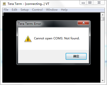 但是当我第二遍运行Debug时,Tera term显示 “cannot open COM3. Not found” ,也就是找不到我的串口。我打开设备管理器,发现串口此时是正常运行,所以我非常困惑。即使我退出Debug,想直接利用默认烧写在里面的out_of_box程序连接Tera term,也仍然不成功。