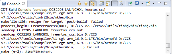 你好,我在用cc3220s烧录程序时遇到了一些问题,我看文档里说用uniflash烧录生成的二进制文件,但是我的程序老是在生成 .bin文件时报错,不知道为什么,它提示的那些脚本什么的我查了ccs文件夹里都有。